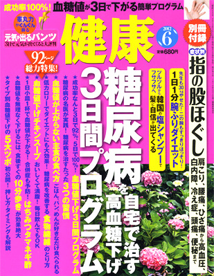 雑誌 『健康』 毎月2日発売。最新医学から手軽な家庭療法まで健康情報満載。 料理、健康、育児、インテリアなどに関する雑誌・書籍を出版している株式会社主婦の友社(しゅふのともしゃ、東京都千代田区に本社を置く出版社)発刊。 値段:720円 |